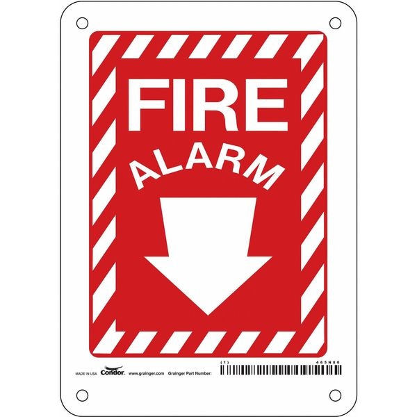 Safety Sign, Vertical Rectangle, Number of Printed Sides 1, English, Sign Legend Fire Alarm, Sign Legend Background Color Red, White, Sign Legend Style Symbol and Text