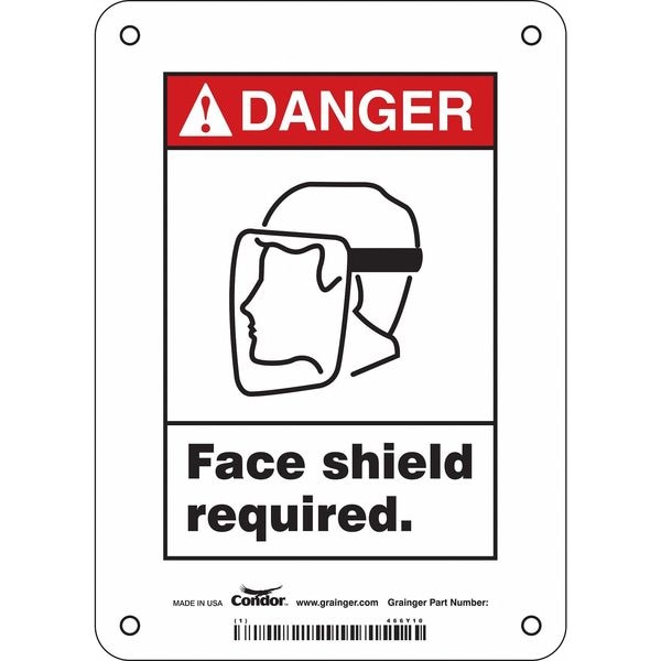 Safety Sign, Vertical Rectangle, Number of Printed Sides 1, English, Sign Format ANSI/OSHA Format, Sign Legend Face Shield Required., Sign Legend Background Color White, Sign Legend Style Symbol and Text