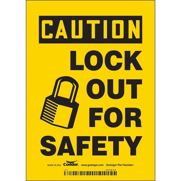 Safety Sign, Vertical Rectangle, Number of Printed Sides 1, English, Sign Format Traditional OSHA, Sign Legend Lock Out For Safety, Sign Legend Background Color Yellow, Sign Legend Style Symbol and Text