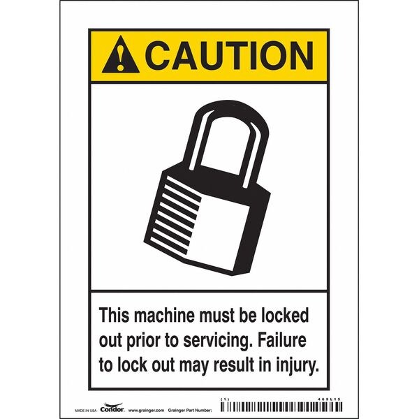 Safety Sign, Vertical Rectangle, Number of Printed Sides 1, English, Sign Format ANSI/OSHA Format, Sign Legend This Machine Must Be Locked Out Prior To Servicing. Failure To Lock Out May Result In Injury., Sign Legend Background Color White, Sign Legend Style Symbol and Text