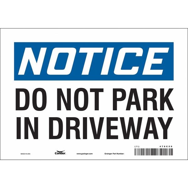 Safety Sign, Vertical Rectangle, Number of Printed Sides 1, English, Sign Format Traditional OSHA, Sign Legend Do Not Park In Driveway, Sign Legend Background Color White, Sign Legend Style Text
