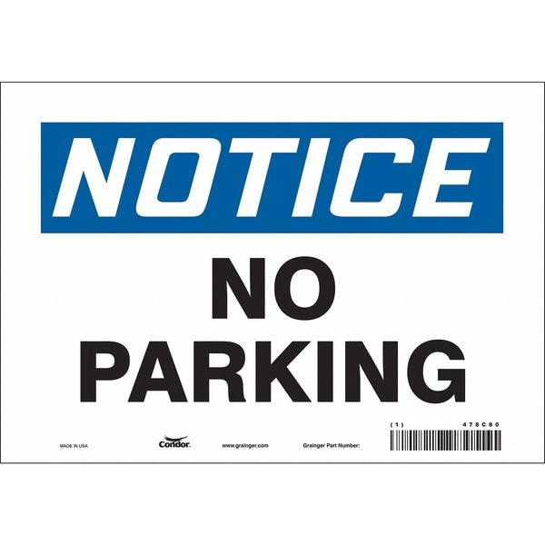 Safety Sign, Vertical Rectangle, Number of Printed Sides 1, English, Sign Format Traditional OSHA, Sign Legend No Parking, Sign Legend Background Color White, Sign Legend Style Text