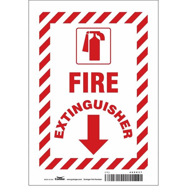 Safety Sign, Horizontal Rectangle, Number of Printed Sides 1, English, Sign Format Other Format, Sign Legend Fire Extinguisher, Sign Legend Background Color Red, White, Sign Legend Style Symbol and Text