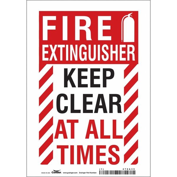 Safety Sign, Horizontal Rectangle, Number of Printed Sides 1, English, Sign Legend Fire Extinguisher Keep Clear At All Times, Sign Legend Background Color Red; White, Sign Legend Style Symbol and Text