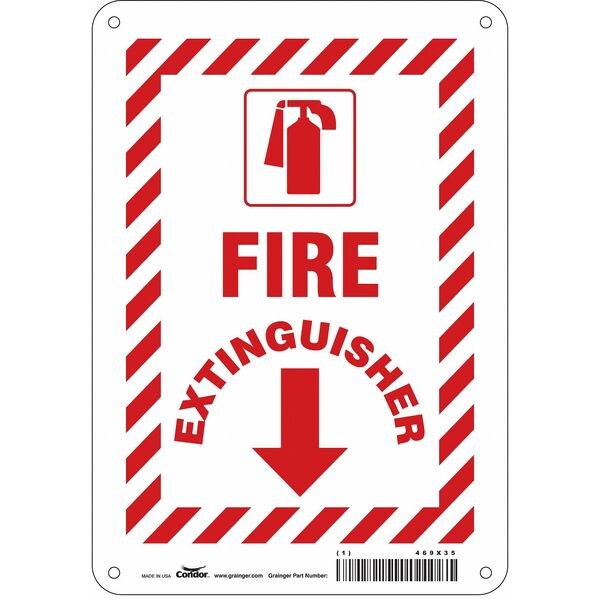 Safety Sign, Horizontal Rectangle, Number of Printed Sides 1, English, Sign Legend Fire Extinguisher, Sign Legend Background Color Red, White, Sign Legend Style Symbol and Text