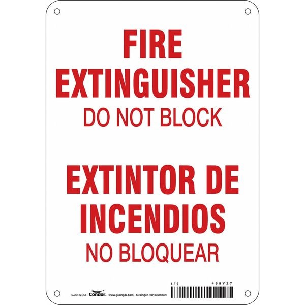 Safety Sign, Horizontal Rectangle, Number of Printed Sides 1, English, Spanish, Sign Format Other Format, Sign Legend Fire Extinguisher Do Not Block/Extintor De Incendios No Bloquear, Sign Legend Background Color White, Sign Legend Style Text