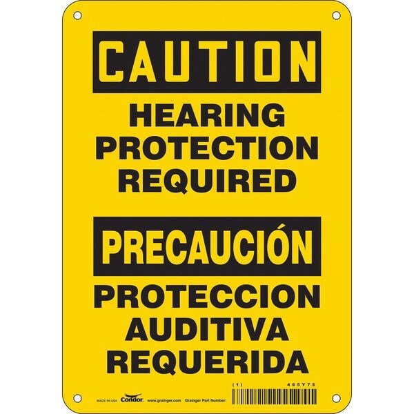 Safety Sign, Horizontal Rectangle, Number of Printed Sides 1, English, Spanish, Sign Format Traditional OSHA, Sign Legend Hearing Protection Required/Proteccion Auditiva Requerida, Sign Legend Background Color Yellow, Sign Legend Style Text