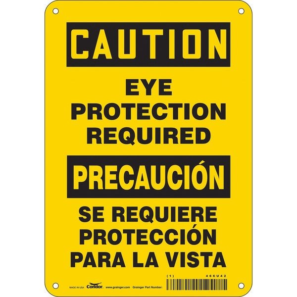 Safety Sign, Horizontal Rectangle, Number of Printed Sides 1, English, Spanish, Sign Format Traditional OSHA, Sign Legend Eye Protection Required/Se Requiere Proteccion Para La Vista, Sign Legend Background Color Yellow, Sign Legend Style Text