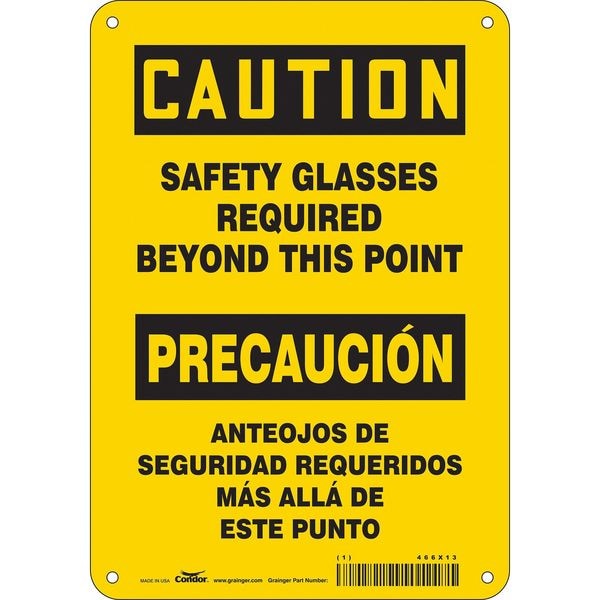 Safety Sign, Horizontal Rectangle, Number of Printed Sides 1, English, Spanish, Sign Format Traditional OSHA, Sign Legend Safety Glasses Required Beyond This Point/Anteojos De Seqguridad Requieridos Mas Alla De Este Punto, Sign Legend Background Color Yellow, Sign Legend Style Text