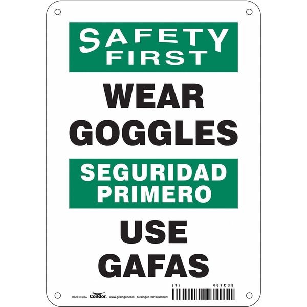 Safety Sign, Horizontal Rectangle, Number of Printed Sides 1, English, Spanish, Sign Format Traditional OSHA, Sign Legend Wear Goggles/Use Gafas, Sign Legend Background Color White, Sign Legend Style Text