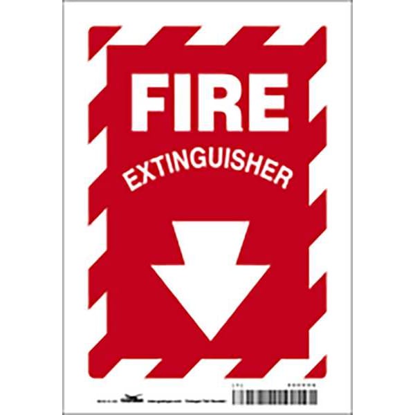 Safety Sign, Horizontal Rectangle, Number of Printed Sides 1, English, Sign Legend Fire Extinguisher, Sign Legend Background Color Red, White, Sign Legend Style Symbol and Text