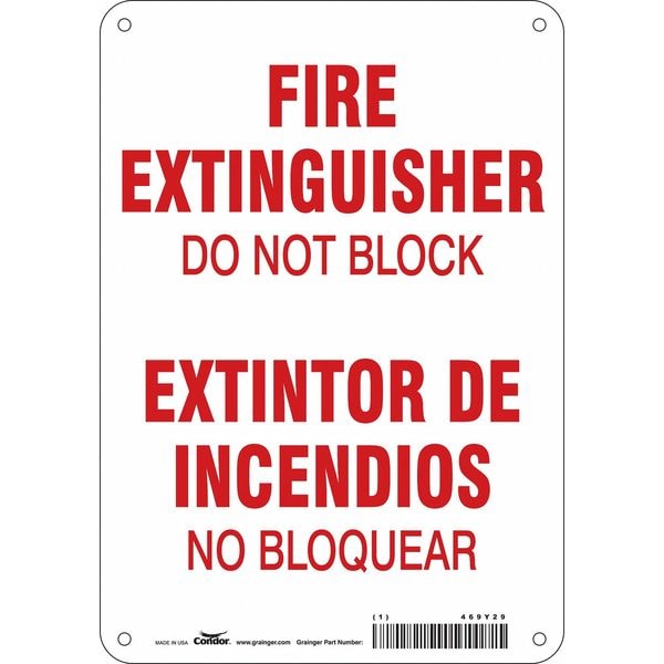Safety Sign, Horizontal Rectangle, Number of Printed Sides 1, English, Spanish, Sign Format Other Format, Sign Legend Fire Extinguisher Do Not Block/Extintor De Incendios No Bloquear, Sign Legend Background Color White, Sign Legend Style Text