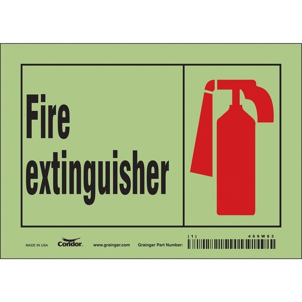 Safety Sign, Horizontal Rectangle, Number of Printed Sides 1, English, Sign Legend Fire Extinguisher, Sign Legend Background Color White, Sign Legend Style Symbol and Text
