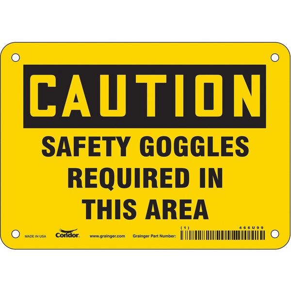 Safety Sign, Horizontal Rectangle, Number of Printed Sides 1, English, Sign Format Traditional OSHA, Sign Legend Safety Goggles Required In This Area, Sign Legend Background Color Yellow, Sign Legend Style Text