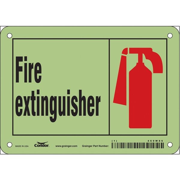 Safety Sign, Horizontal Rectangle, Number of Printed Sides 1, English, Sign Format Other Format, Sign Legend Fire Extinguisher, Sign Legend Background Color White, Sign Legend Style Symbol and Text