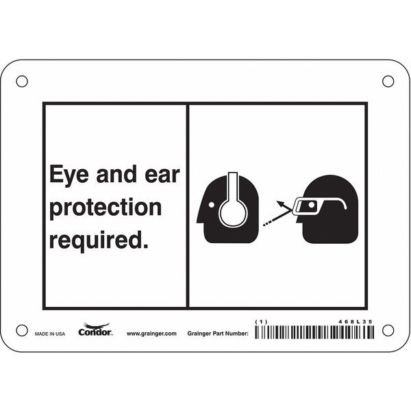 Safety Sign, Horizontal Rectangle, Number of Printed Sides 1, English, Sign Format Other Format, Sign Legend Eye And Ear Protection Required., Sign Legend Background Color White, Sign Legend Style Symbol and Text