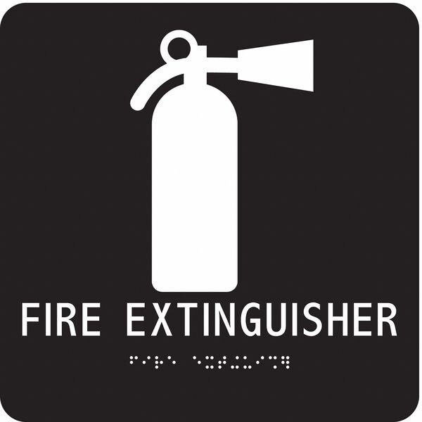 Safety Sign, Square, Number of Printed Sides 1, English, Sign Legend Fire Extinguisher, Sign Legend Background Color Black, Sign Legend Style Symbol and Text