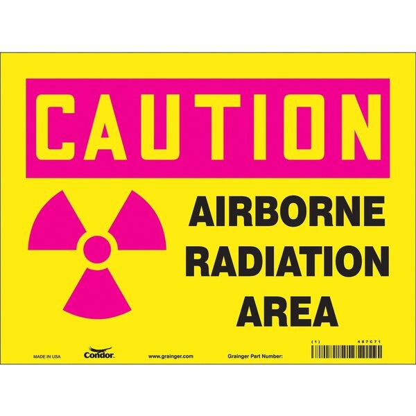Safety Sign, Vertical Rectangle, Number of Printed Sides 1, English, Sign Format Traditional OSHA, Sign Legend Airborne Radiation Area, Sign Legend Background Color Yellow, Sign Legend Style Symbol and Text
