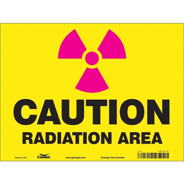 Safety Sign, Vertical Rectangle, Number of Printed Sides 1, English, Sign Format Other Format, Sign Legend Radiation Area, Sign Legend Background Color Yellow, Sign Legend Style Symbol and Text