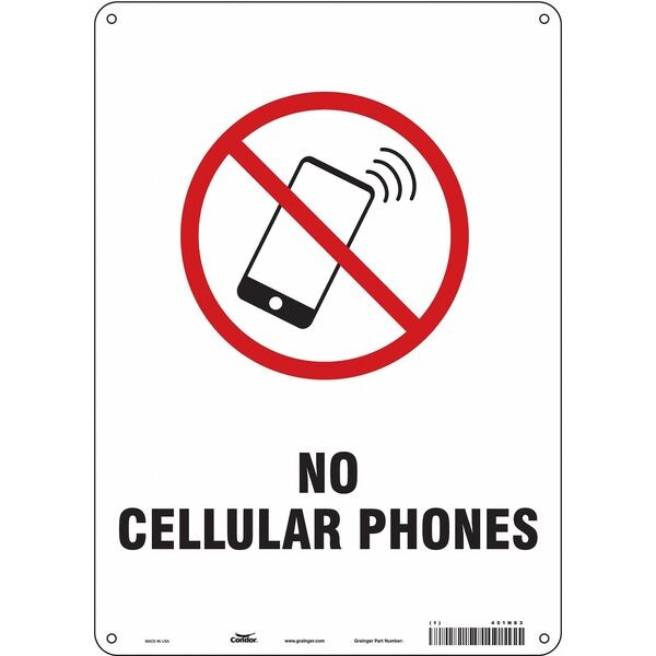 Safety Sign Cell Phone, 14 in Height, 10 in Width, Polyethylene, Vertical Rectangle, English