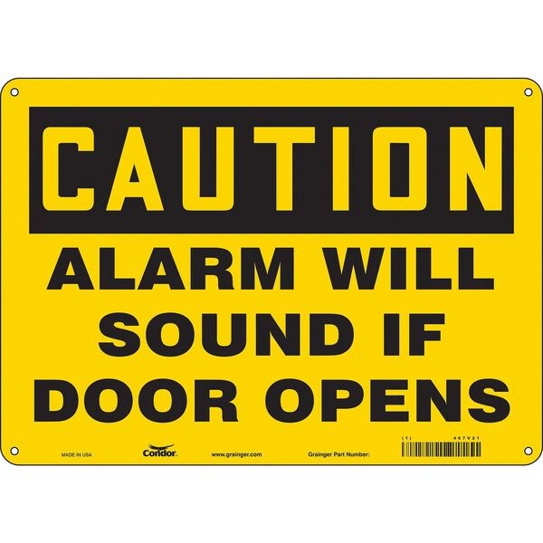 Safety Sign Emergency Exit, Horizontal Rectangle, Number of Printed Sides 1, English, Sign Format Traditional OSHA, Sign Legend Alarm Will Sound If Door Opens, Sign Legend Background Color Yellow, Sign Legend Style Text