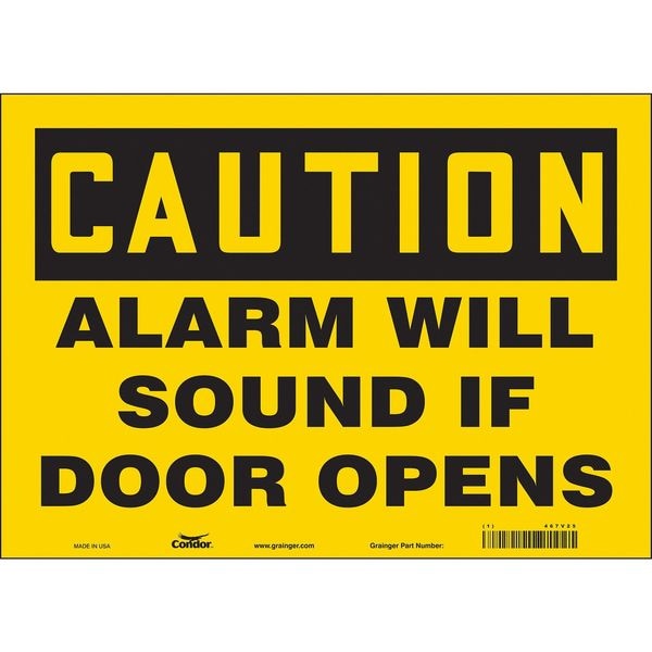 Safety Sign Emergency Exit, Horizontal Rectangle, Number of Printed Sides 1, English, Sign Legend Alarm Will Sound If Door Opens, Sign Legend Background Color Yellow, Sign Legend Style Text