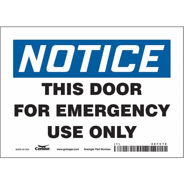 Safety Sign Emergency Exit, Horizontal Rectangle, Number of Printed Sides 1, English, Sign Legend This Door For Emergency Use Only, Sign Legend Background Color White, Sign Legend Style Text