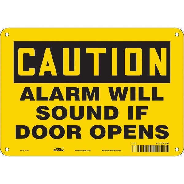 Safety Sign Emergency Exit, Vertical Rectangle, Number of Printed Sides 1, English, Sign Legend Alarm Will Sound If Door Opens, Sign Legend Background Color Yellow, Sign Legend Style Text