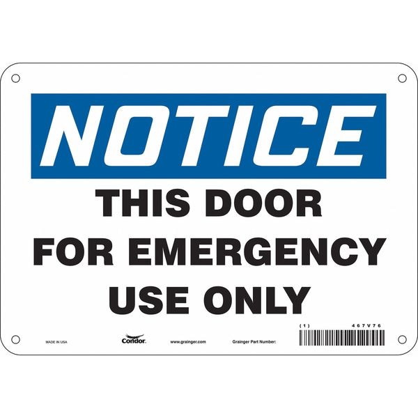 Safety Sign Emergency Exit, 7 in H, 10 in W, Polyethylene, Vertical Rectangle, English, 467V76