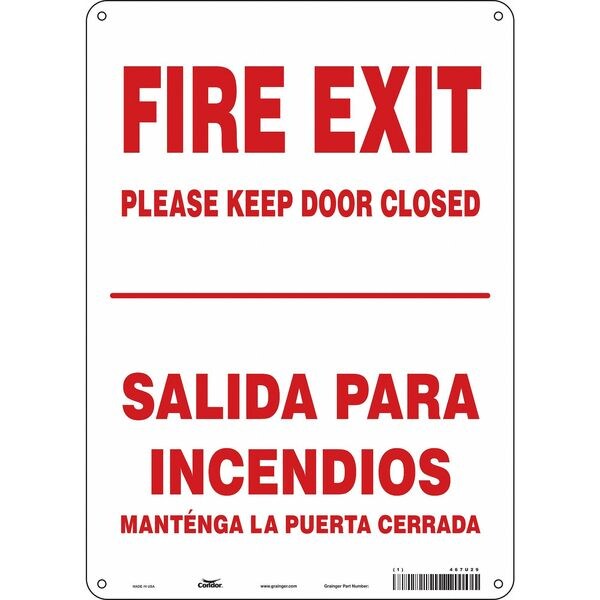 Safety Sign Emergency Exit, Vertical Rectangle, Number of Printed Sides 1, English, Spanish, Sign Legend Fire Exit Please Keep Door Closed / Salida Para Incendios Mantenga La Puerta Cerrada, Sign Legend Background Color White, Sign Legend Style Text