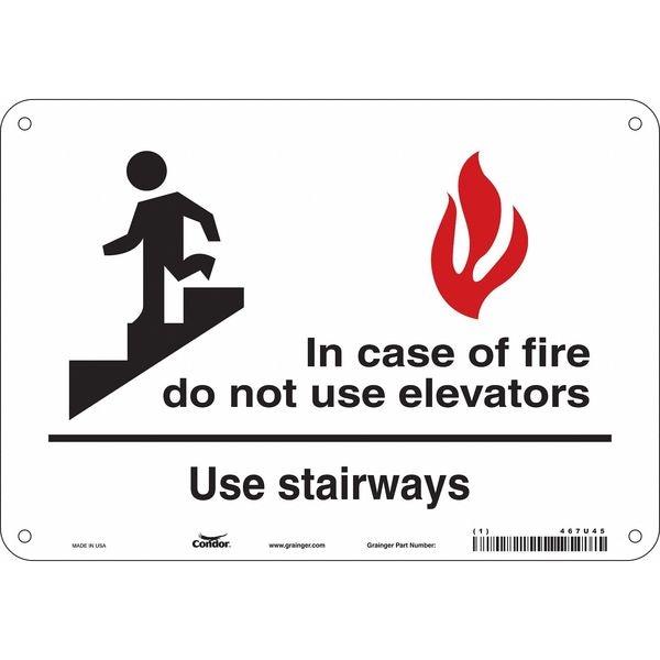 Safety Sign Emergency Exit, Vertical Rectangle, Number of Printed Sides 1, English, Sign Legend In Case Of Fire Do Not Use Elevators Use Stairways, Sign Legend Background Color White, Sign Legend Style Symbol and Text