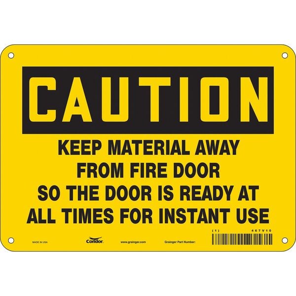 Safety Sign Emergency Exit, Vertical Rectangle, Number of Printed Sides 1, English, Sign Format Traditional OSHA, Sign Legend Keep Material Away From Fire Door So The Door Is Ready At All Times For Instant Use, Sign Legend Background Color Yellow, Sign Legend Style Text
