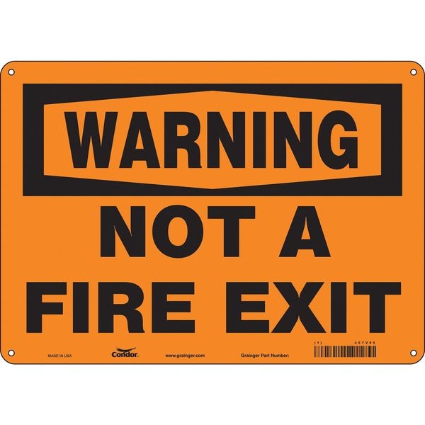 Safety Sign Emergency Exit, Aluminum, 14 in W, 10 in H, WARNING NOT A FIRE EXIT, Orange