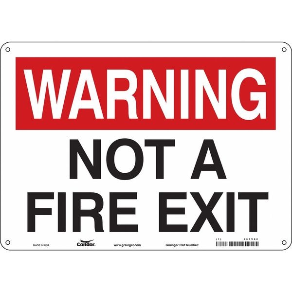 Safety Sign Emergency Exit, Aluminum, 14 in W, 10 in H, WARNING NOT A FIRE EXIT, White