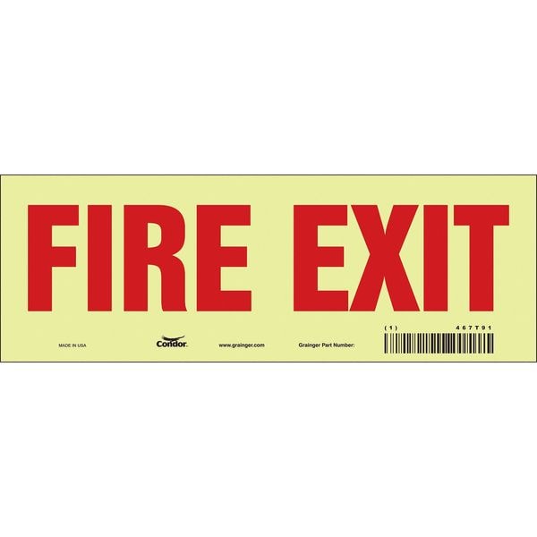 Safety Sign Emergency Exit, Glow Vinyl, 10 in W, 3 1/2 in H, FIRE EXIT, White