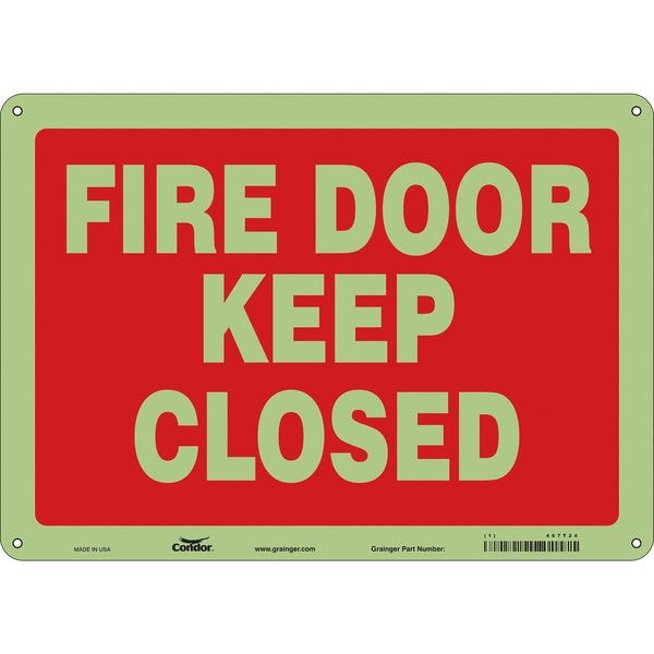 Safety Sign Emergency Exit, Glow Vinyl, 14 in W, 10 in H, FIRE DOOR KEEP CLOSED, Red, White