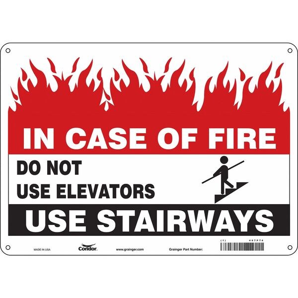 Safety Sign Emergency Exit, Horizontal Rectangle, Number of Printed Sides 1, English, Sign Legend In Case Of Fire Do Not Use Elevators Use Stairways, Sign Legend Background Color Black, Red, White, Sign Legend Style Symbol and Text