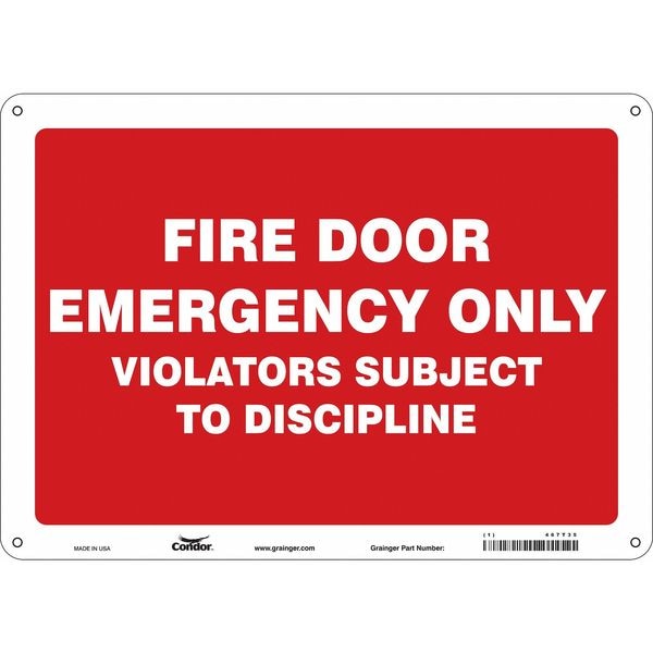 Safety Sign Emergency Exit, Horizontal Rectangle, Number of Printed Sides 1, English, Sign Format Other Format, Sign Legend Fire Door Emergency Only Violators Subject To Discipline, Sign Legend Background Color Red, White, Sign Legend Style Text