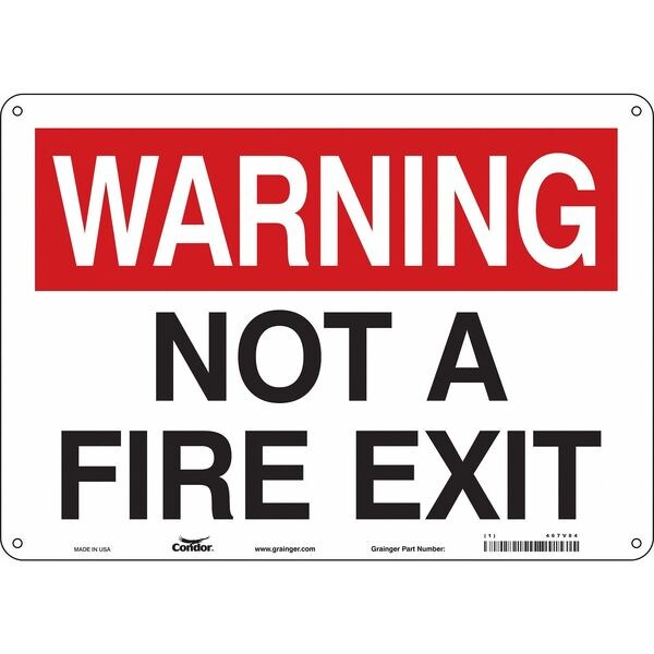 Safety Sign Emergency Exit, Polyethylene, 14 in W, 10 in H, WARNING NOT A FIRE EXIT, White