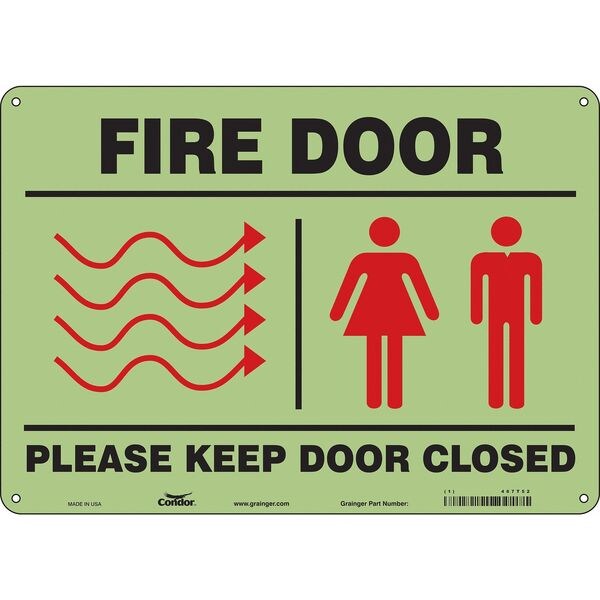 Safety Sign Emergency Exit, Horizontal Rectangle, Number of Printed Sides 1, English, Sign Format Other Format, Sign Legend Fire Door Please Keep Door Closed, Sign Legend Background Color White, Sign Legend Style Symbol and Text
