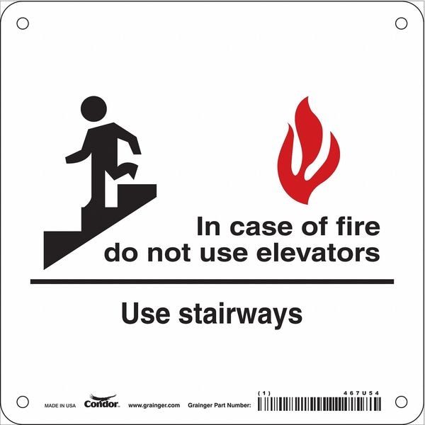 Safety Sign Emergency Exit, Square, Number of Printed Sides 1, English, Sign Format Other Format, Sign Legend In Case Of Fire Do Not Use Elevators Use Stairways, Sign Legend Background Color White, Sign Legend Style Symbol and Text