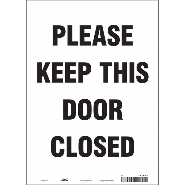 Safety Sign Emergency Exit, Vinyl, 10 in W, 14 in H, PLEASE KEEP THIS DOOR CLOSED, White