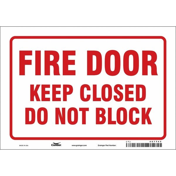 Safety Sign Emergency Exit, Vertical Rectangle, Number of Printed Sides 1, English, Sign Legend Fire Door Keep Closed Do Not Block, Sign Legend Background Color White, Sign Legend Style Text