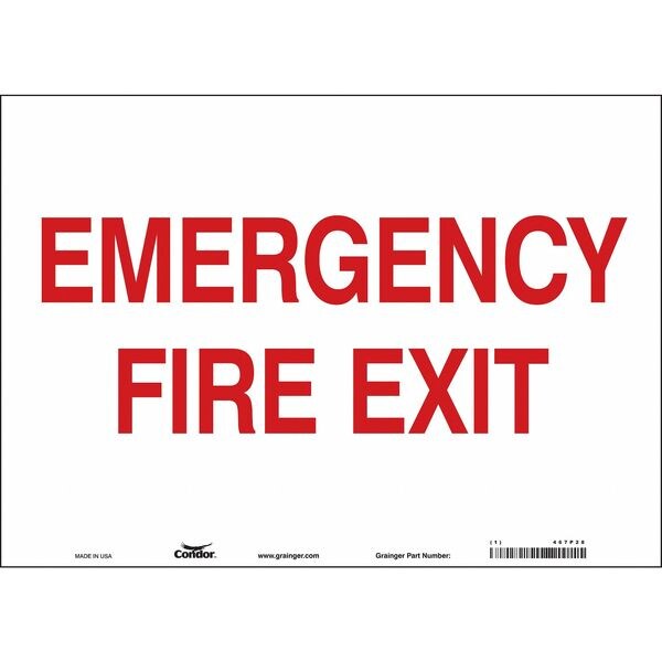 Safety Sign Emergency Exit, Vinyl, 14 in W, 10 in H, EMERGENCY FIRE EXIT, White