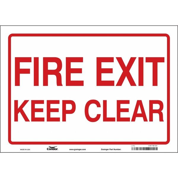 Safety Sign Emergency Exit, Horizontal Rectangle, Number of Printed Sides 1, English, Sign Legend Fire Exit Keep Clear, Sign Legend Background Color White, Sign Legend Style Text