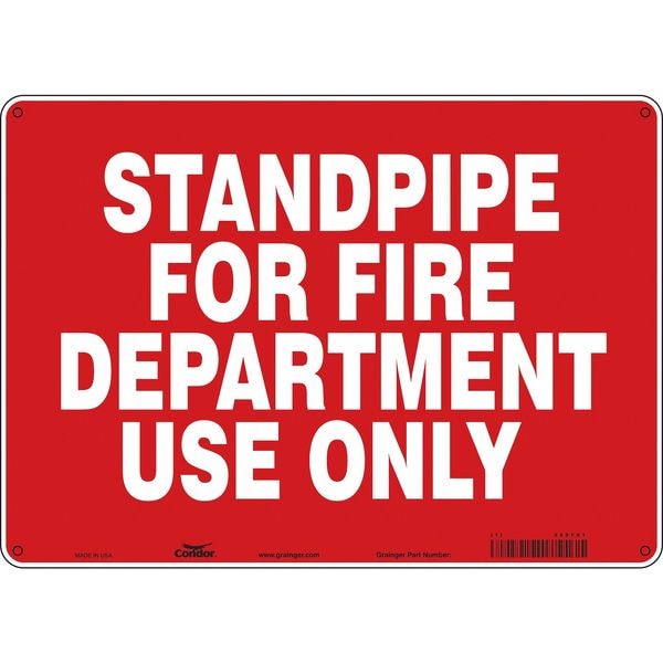 SAFETY SIGN FIRE AND EMERGENCY, Horizontal Rectangle, Number of Printed Sides 1, English, Sign Legend Standpipe For Fire Department Use Only, Sign Legend Background Color Red, Sign Legend Style Text
