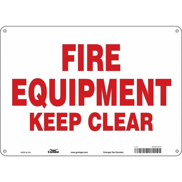 SAFETY SIGN FIRE AND EMERGENCY, Horizontal Rectangle, Number of Printed Sides 1, English, Sign Legend Fire Equipment Keep Clear, Sign Legend Background Color White, Sign Legend Style Text