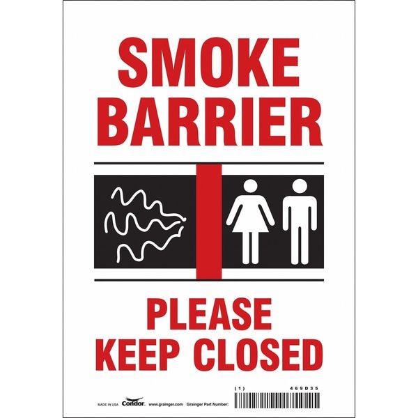 SAFETY SIGN FIRE AND EMERGENCY, Horizontal Rectangle, Number of Printed Sides 1, English, Sign Format Other Format, Sign Legend Smoke Barrier Please Keep Closed, Sign Legend Background Color White, Sign Legend Style Symbol and Text