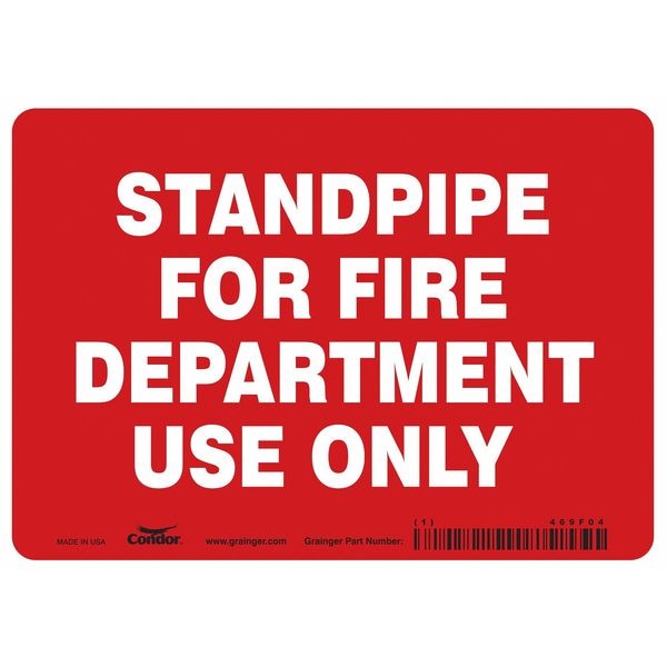 SAFETY SIGN FIRE AND EMERGENCY, Horizontal Rectangle, Number of Printed Sides 1, English, Sign Legend Standpipe For Fire Department Use Only, Sign Legend Background Color Red, Sign Legend Style Text