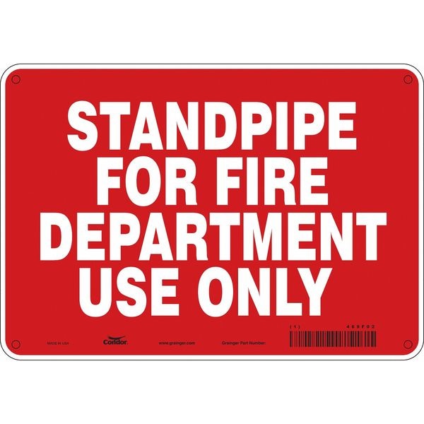SAFETY SIGN FIRE AND EMERGENCY, Vertical Rectangle, Number of Printed Sides 1, English, Sign Legend Standpipe For Fire Department Use Only, Sign Legend Background Color Red, Sign Legend Style Text